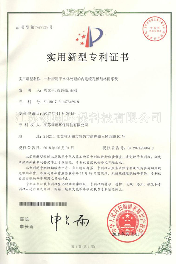 內(nèi)進(jìn)流孔板細(xì)格柵系統(tǒng)專利